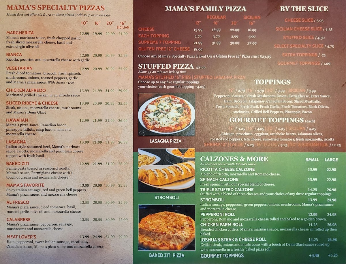 Enhancing your experience are the delightful desserts, like the classic powdered Zeppoli's, which will transport you to a more indulgent place. With each bite, they encapsulate the sweet traditions of Italian culture, offering a perfect end to your meal. Whether dining alone, with family, or gathering friends for a special occasion, Mama Romanos promises an array of dishes to suit all palates.